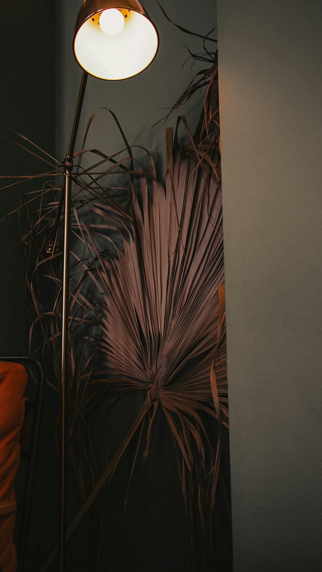 lamp, plant, wallpaper, desk lamp, houseplant, home decor, interior design, minimalist, cozy, nature