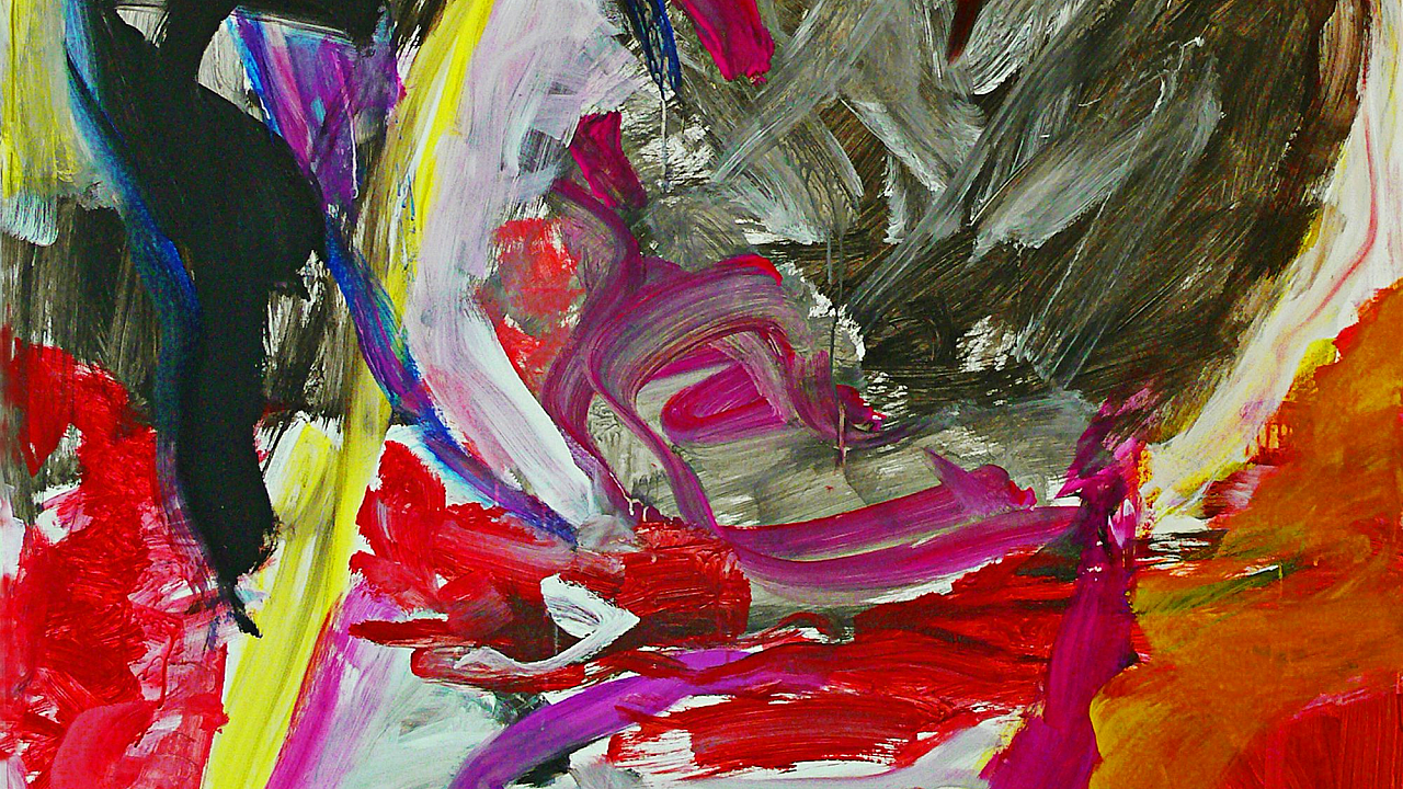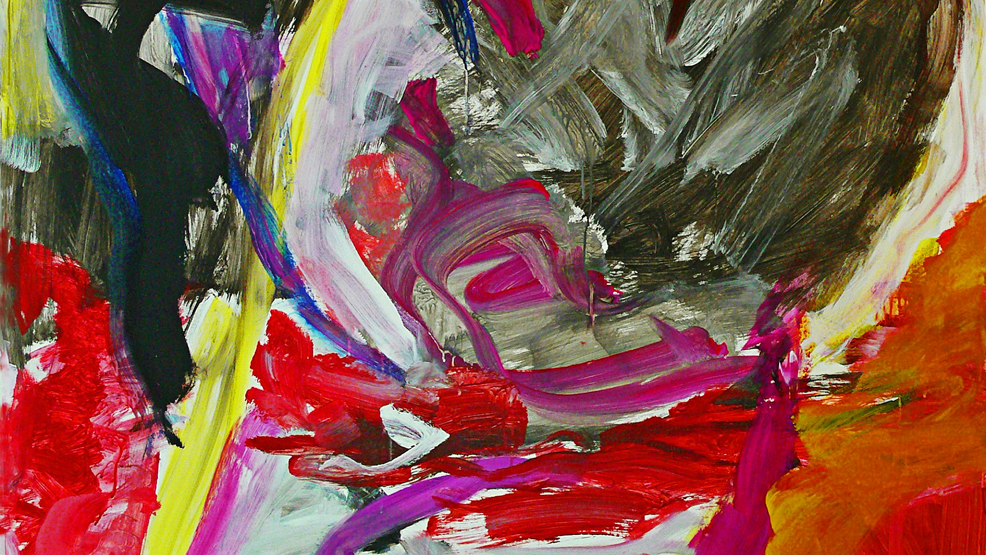 This vibrant wallpaper features a painting of a bird set against a striking yellow and red background. The artwork is bold and eye-catching.