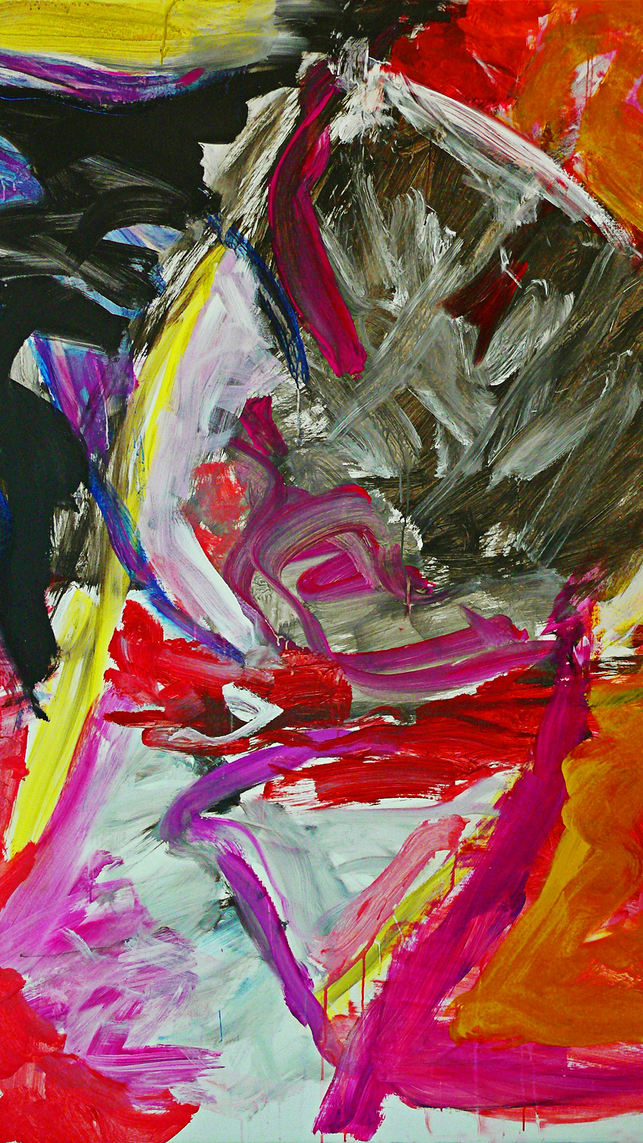 a painting of a bird on a yellow and red background