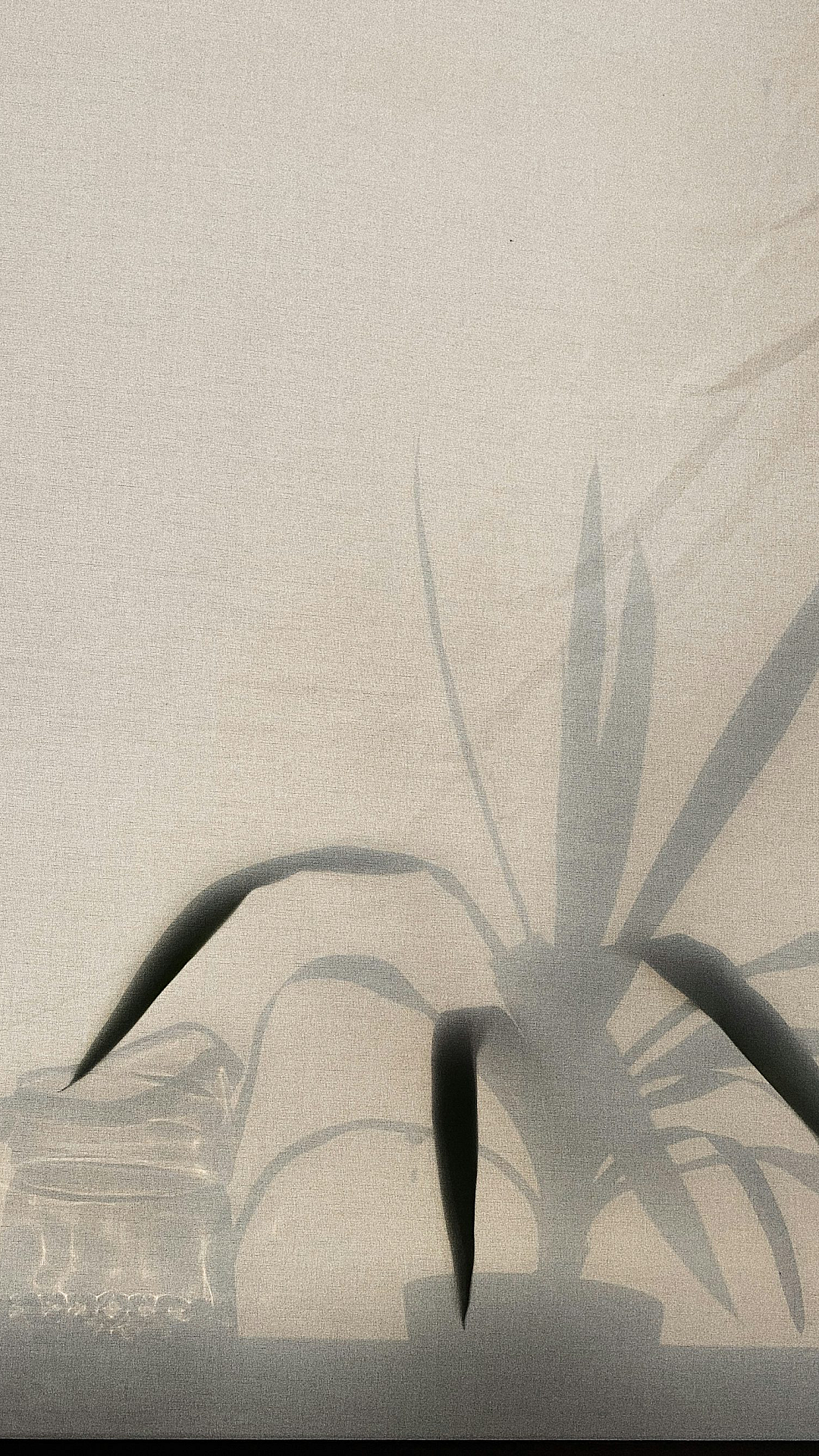 A minimalist wallpaper featuring the delicate shadow of a plant cast upon a pristine white sheet. Simple, elegant, and perfect for a calming atmosphere.