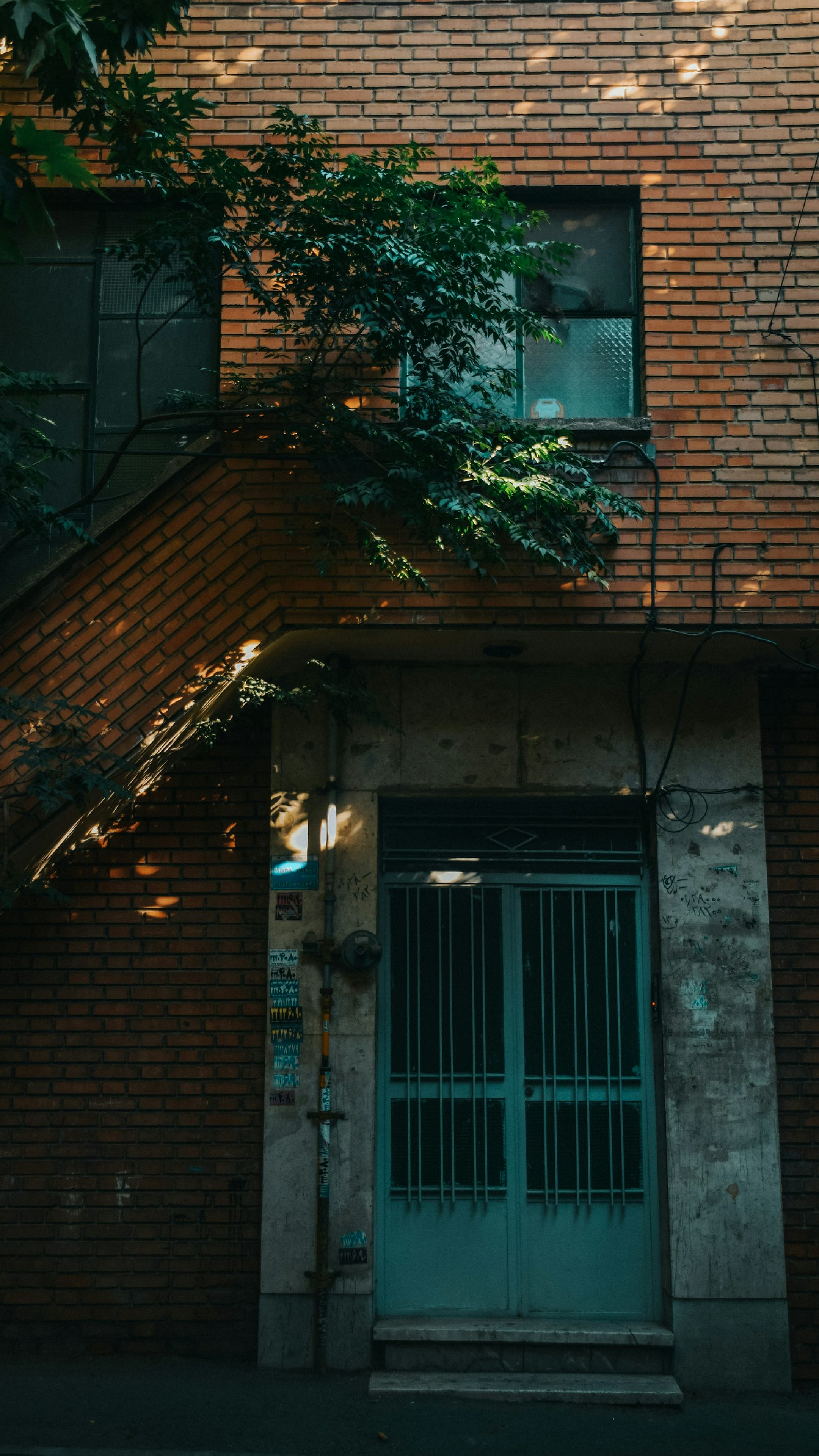 Keywords: brick building, green door, tall building, architecture, wallpaper, urban, city, facade, texture, building