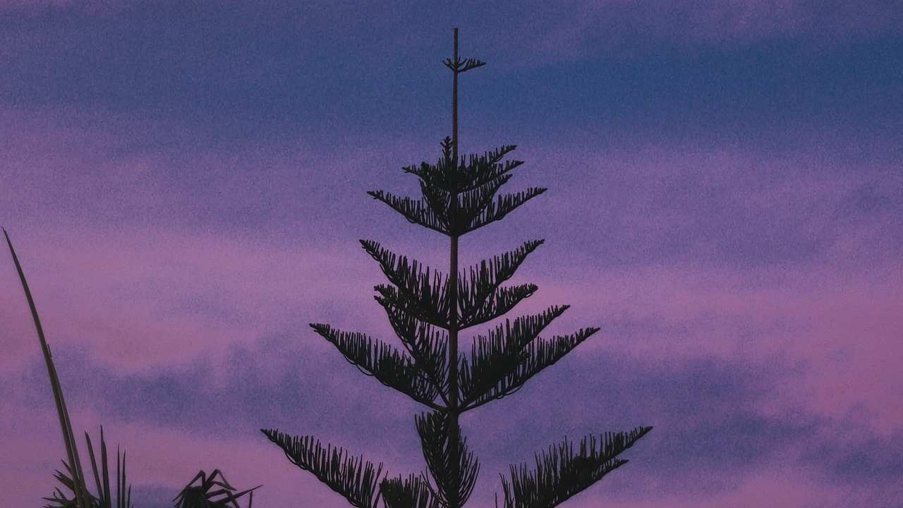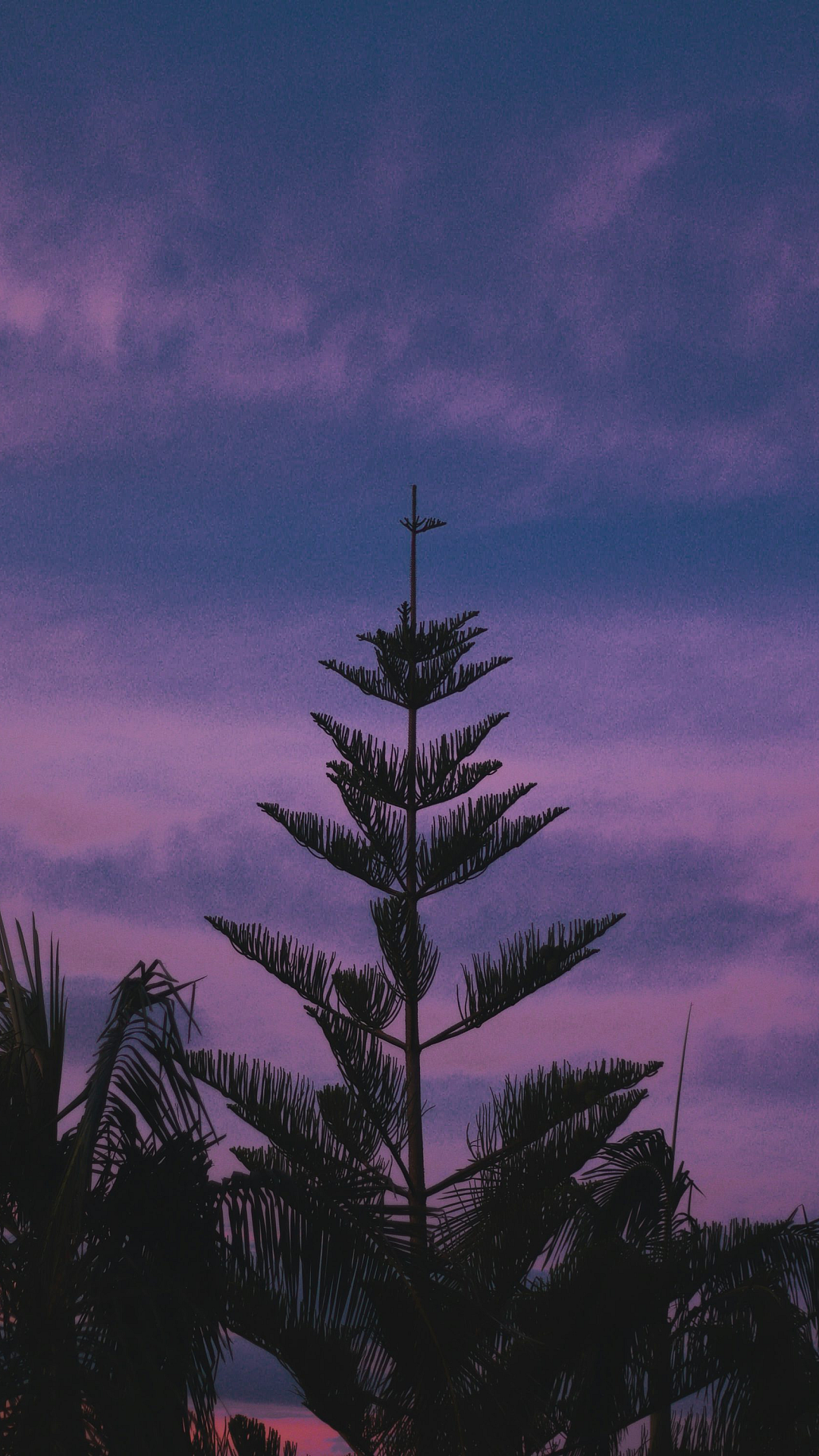 tall tree, purple sky, sunset, nature, landscape, silhouette, twilight, peaceful, serene, wallpaper