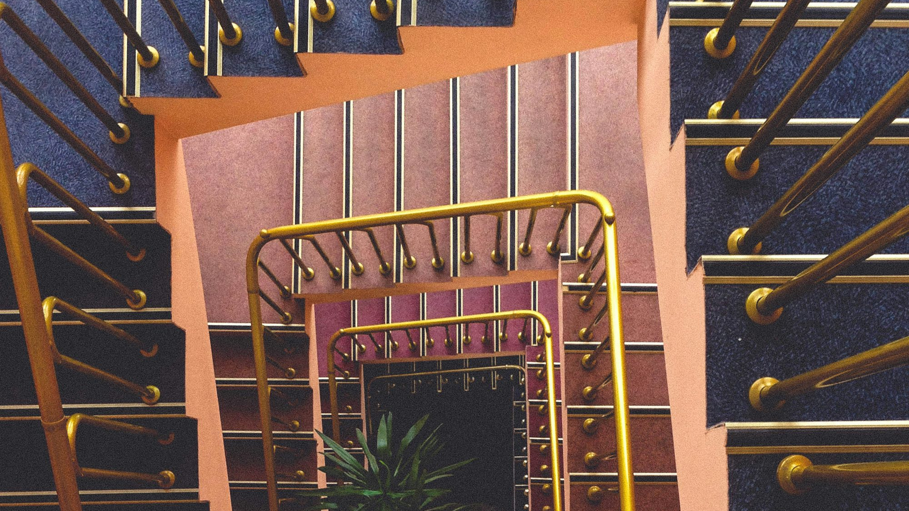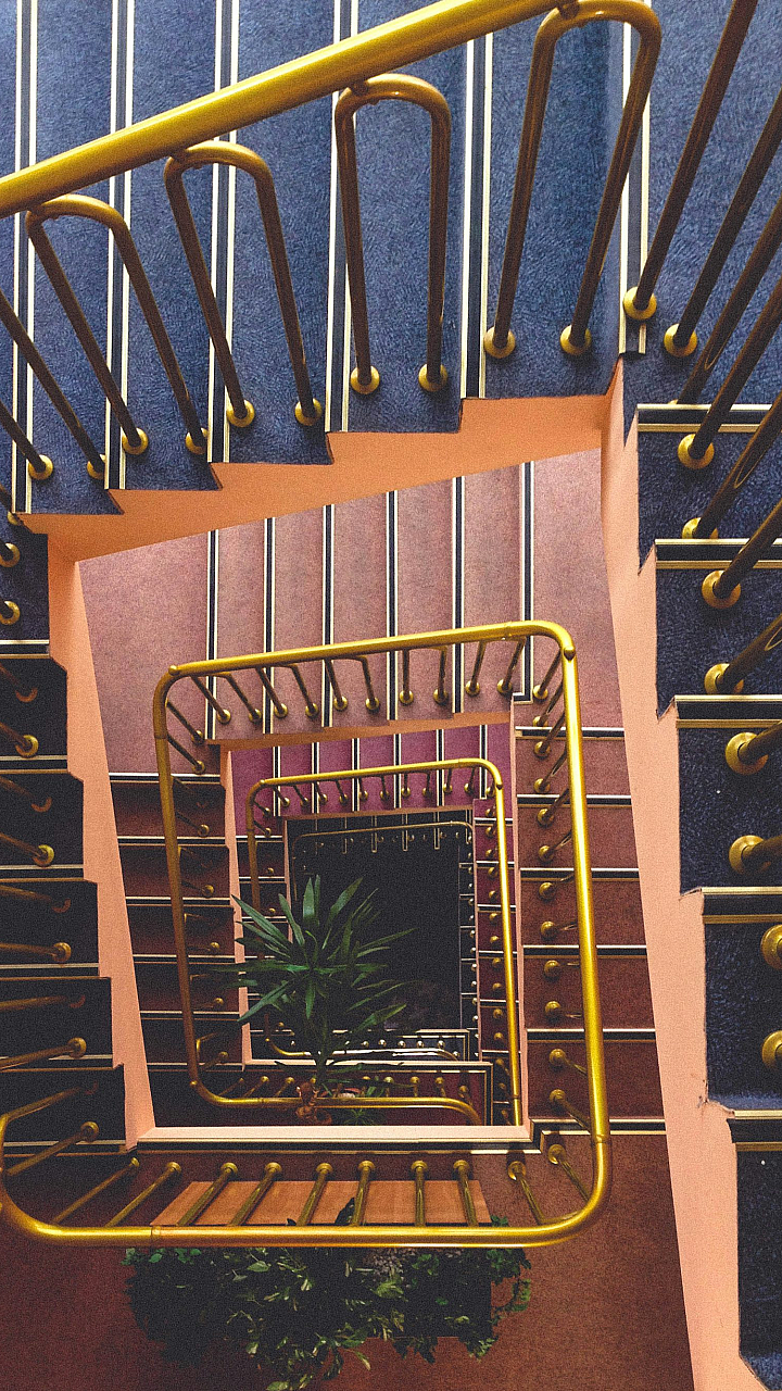 A stunning aerial view of an empty spiral staircase. Perfect as a minimalist wallpaper for your desktop or mobile device.
