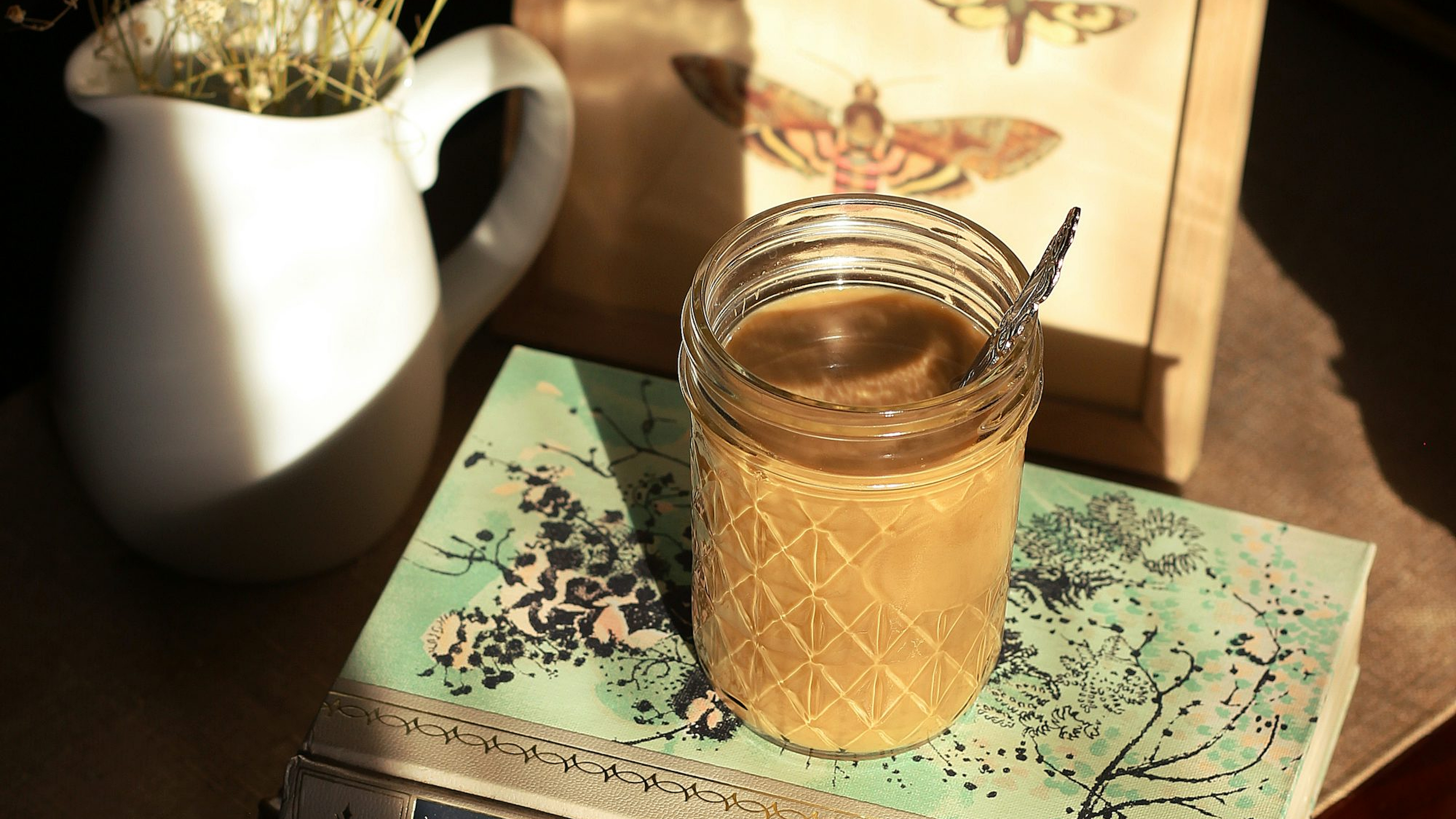 clear glass jar, white book, green book, jar wallpaper, minimal wallpaper, simple wallpaper, clean wallpaper, book wallpaper, glass wallpaper, still life wallpaper