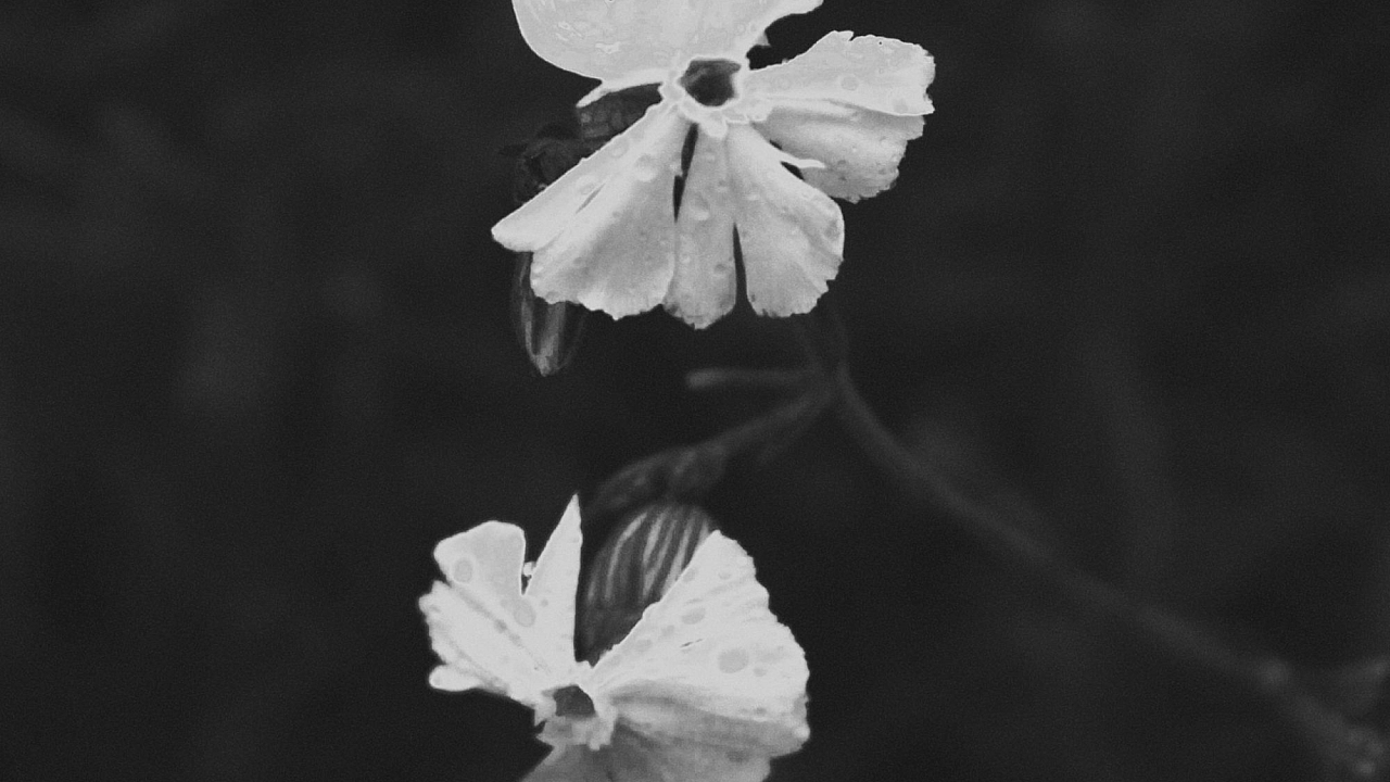 A stunning grayscale image of a delicate petaled flower, perfect for a serene and elegant desktop background.