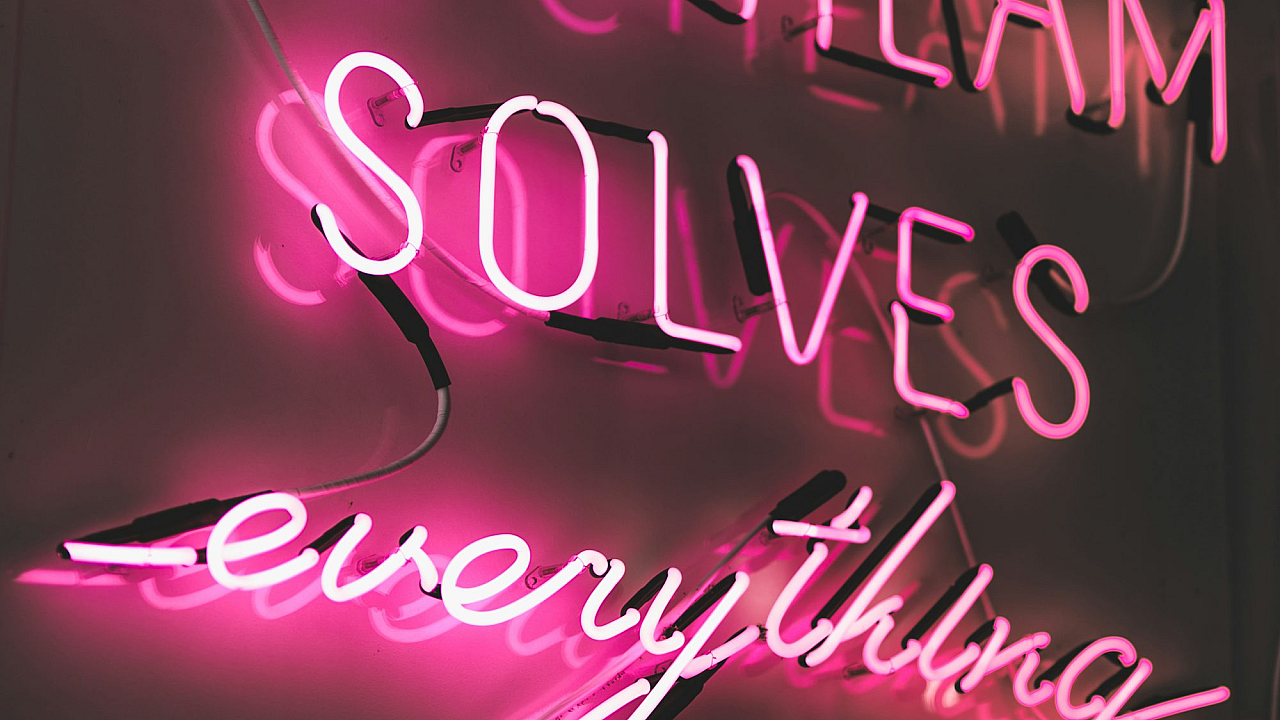 pink ice cream, LED sign, neon sign, dessert wallpaper, sweet wallpaper, pink wallpaper, ice cream wallpaper, food wallpaper, digital art, aesthetic wallpaper