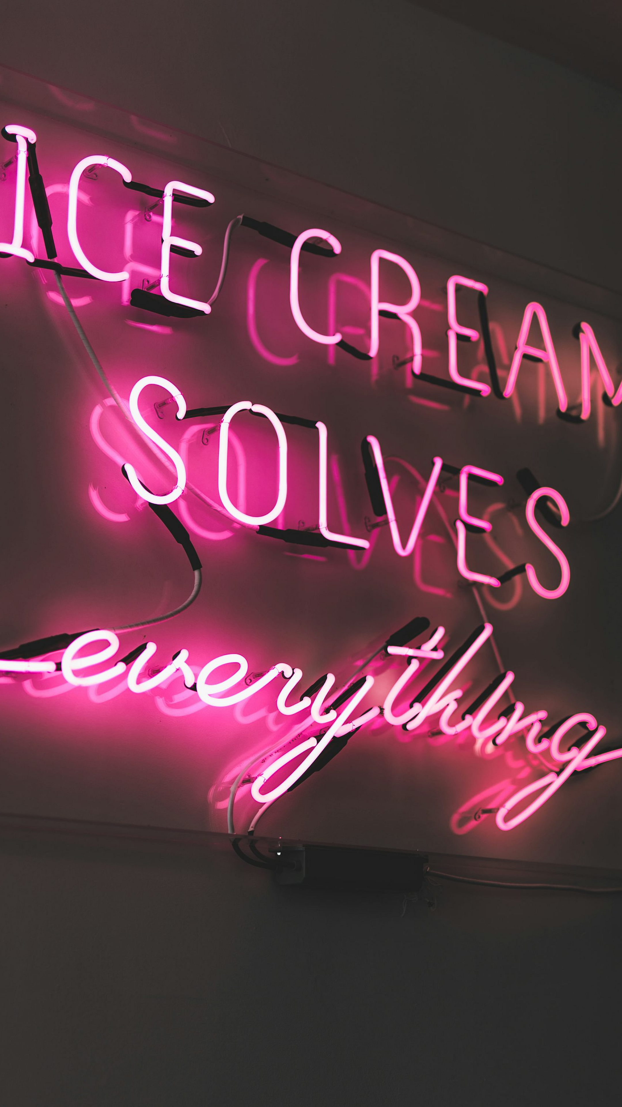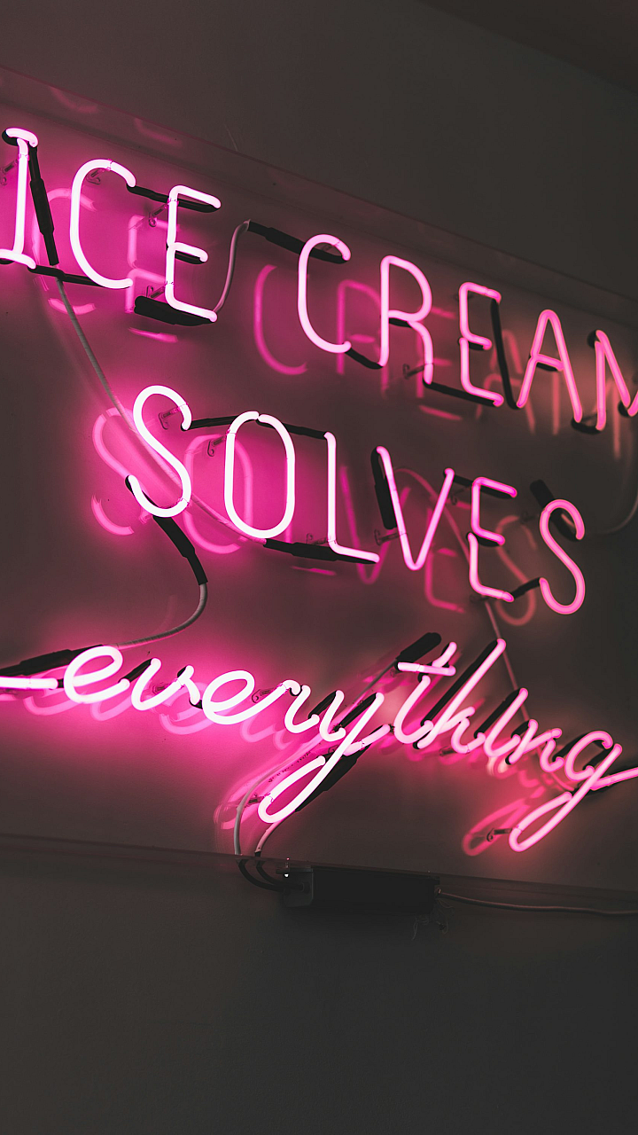 A vibrant wallpaper featuring a pink ice cream LED sign, perfect for adding a touch of sweetness and retro charm to your device.