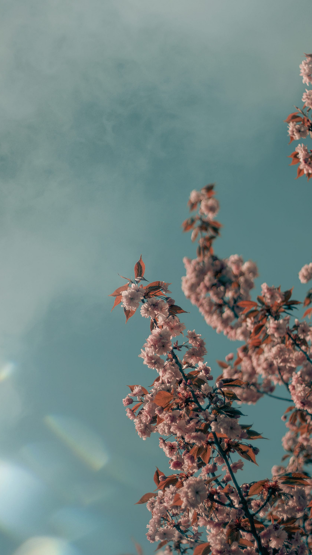A stunning wallpaper featuring vibrant red and green leaves set against a clear blue sky. Perfect for adding a touch of nature to your devices.