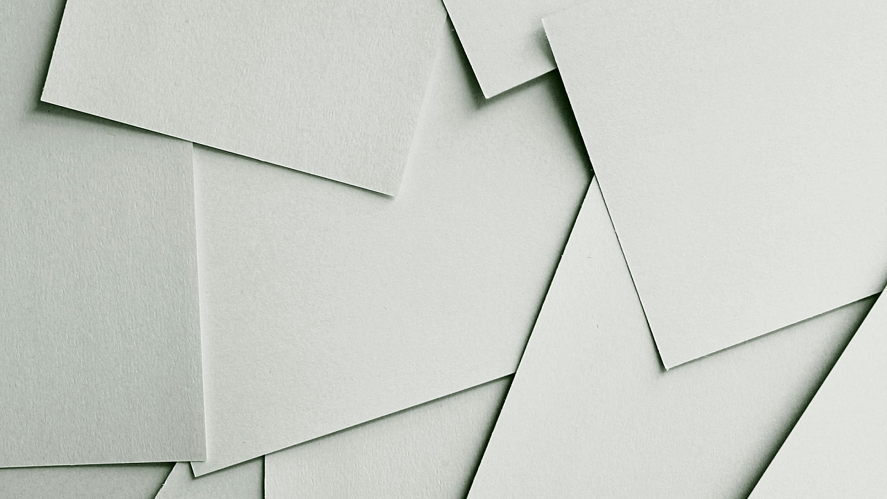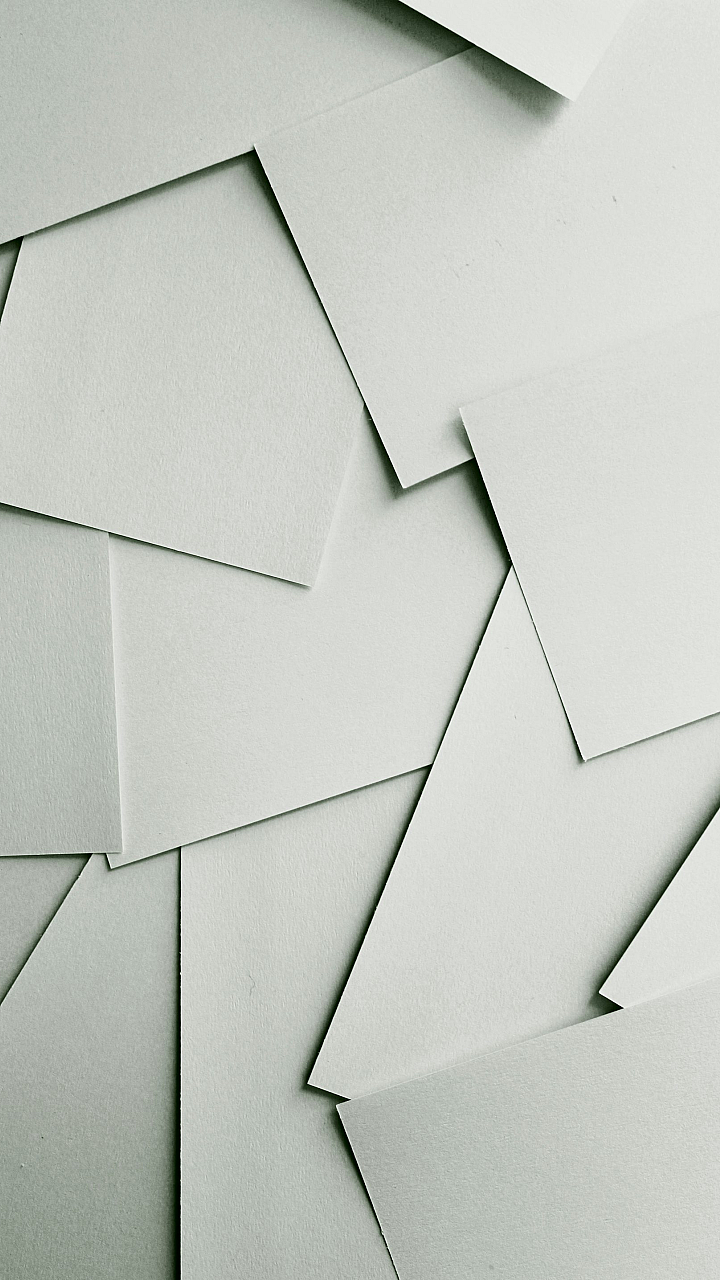 A minimalist wallpaper featuring scattered sheets of white paper covering the entire frame, creating a clean and simple aesthetic.