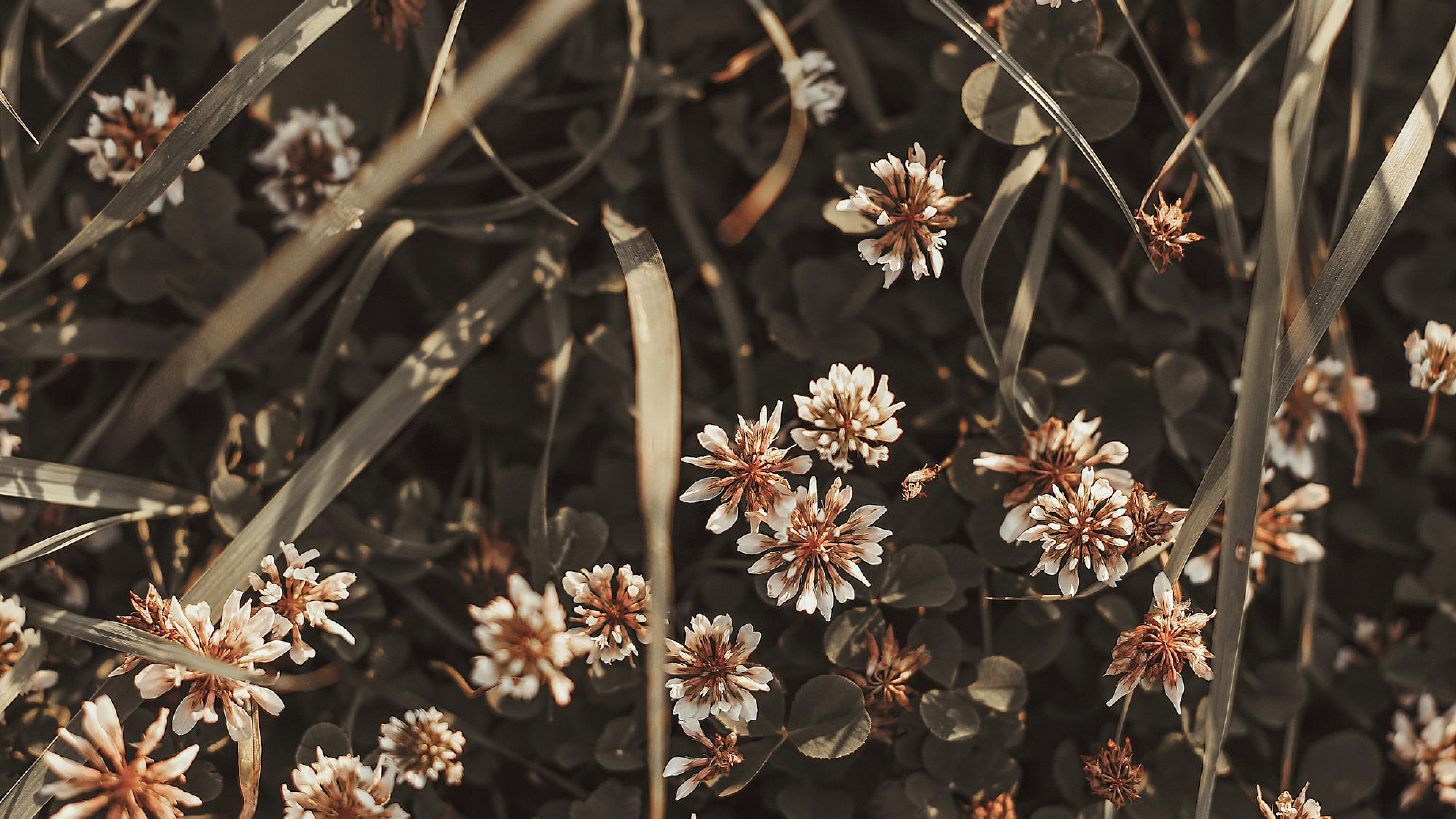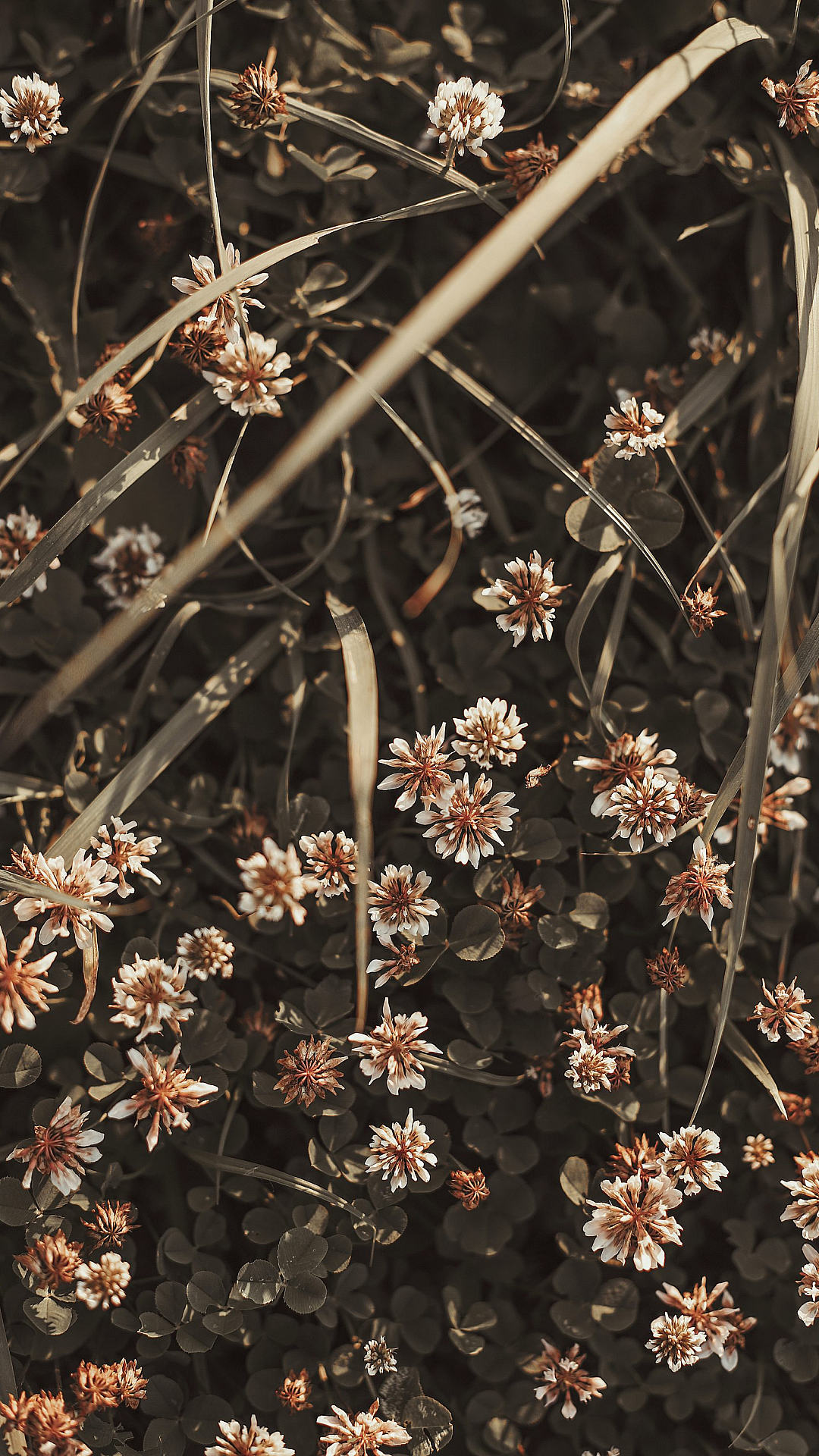 A charming wallpaper featuring white and brown flowers, captured with a tilt-shift lens to create a delightful miniature effect. Perfect for adding a touch of natural beauty to your desktop.