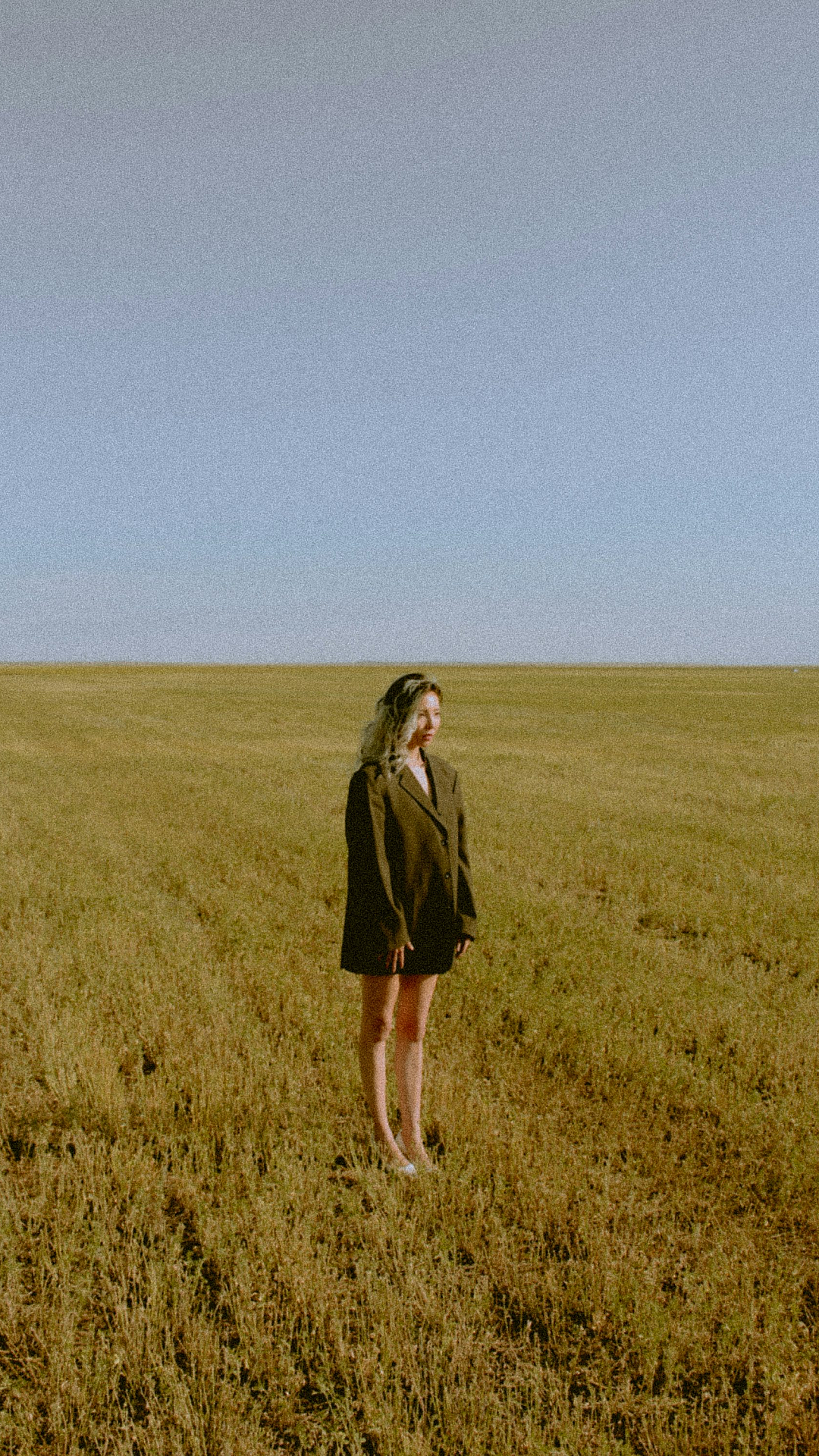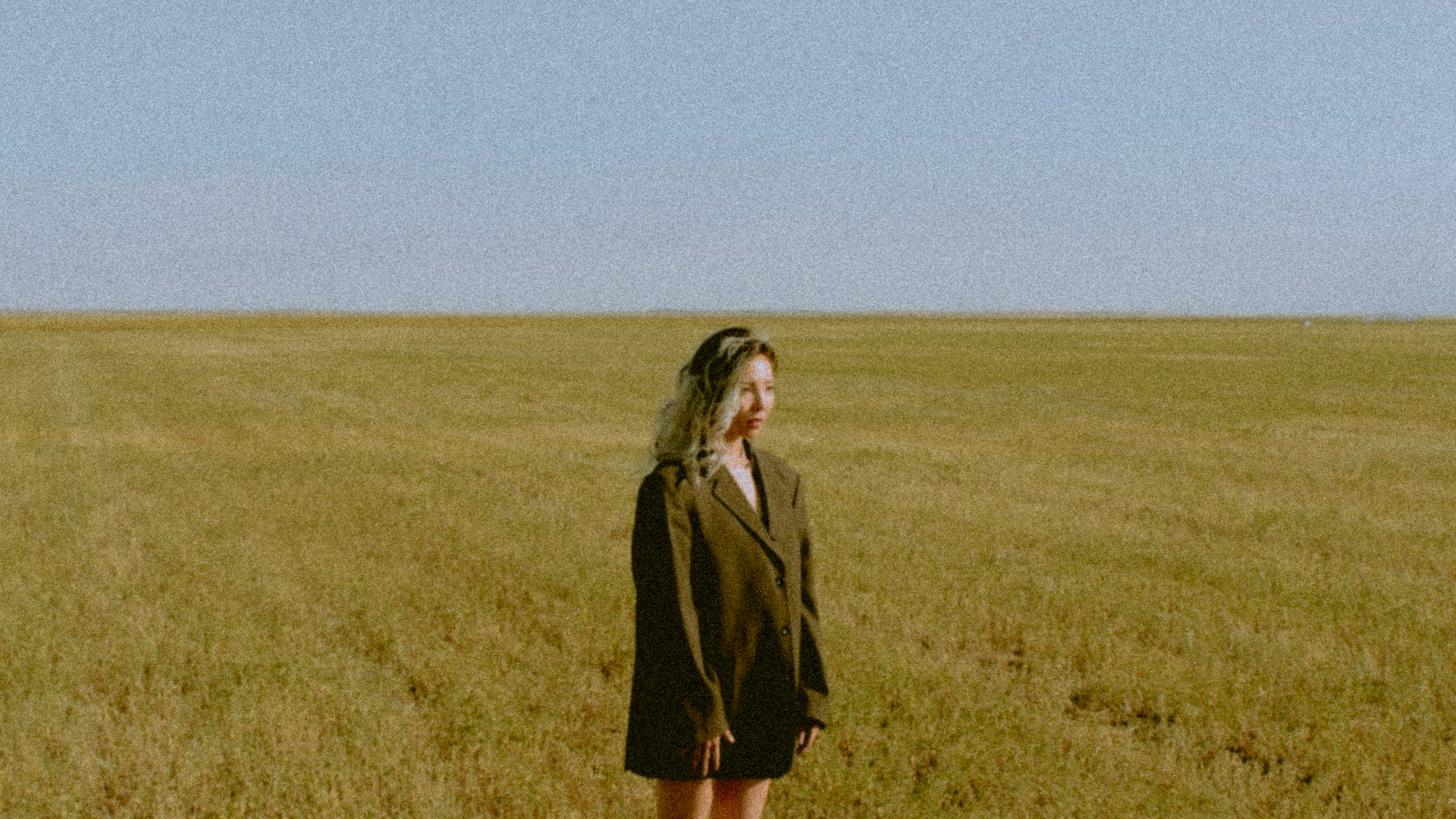 woman, black coat, green grass, field, daytime, nature, outdoor, portrait, standing, wallpaper